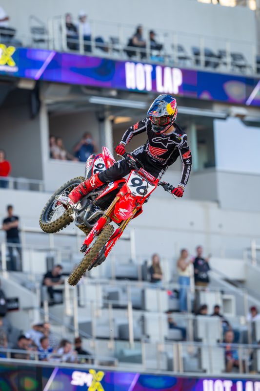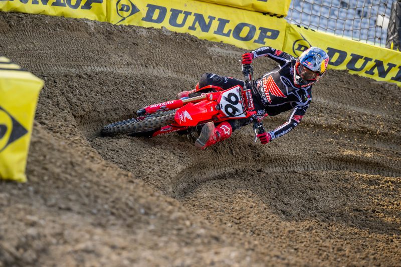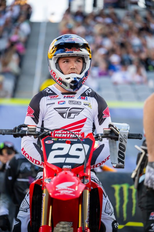 “I definitely feel more confident on the bike; we tried a lot of things during the week to help where I felt like we struggled [at Anaheim]. That’s one thing I pride myself on: being able to show up in the main event when it counts. We were close, it was a good race. I feel like the first 15 minutes was just trying to get it under my belt, as I feel like the last five minutes is where I can make up that gap. Honestly, for me the heat race is the hardest race of the night—it was just a frustrating one—but I shook that off and put all the chips on the main. I really love what I can do in 20 minutes and just hit my marks. All day, I look forward to the main event.”
