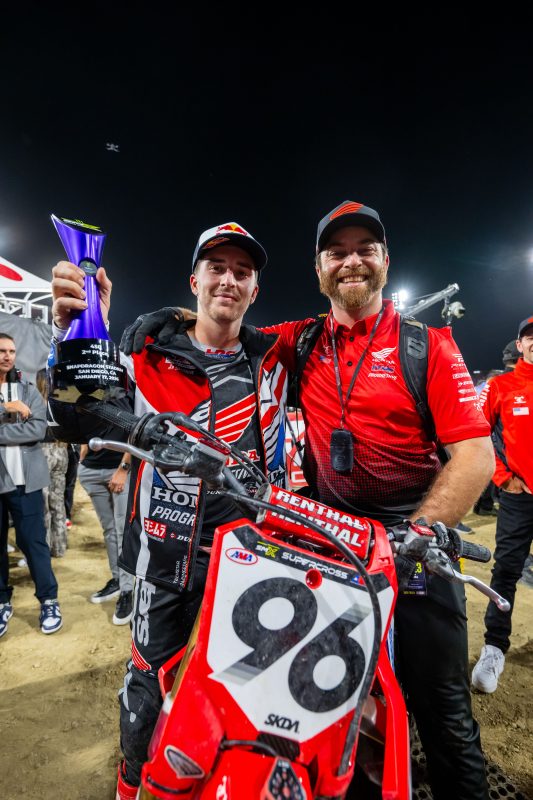 “We had another relatively smooth weekend, and as a team I think we executed well. We definitely seem to have a better idea of what direction we should be going with Hunter and his bike setup, which is encouraging. I don’t think we had on our bingo card that Hunter would do what he did in the main; he wasn’t exactly stoked on himself or the bike during the day, but it was awesome to see him lock in and show up when it mattered most. That’s a quality not all athletes have, but I feel like the elite do, and I couldn’t be prouder of him for that. Chance was so close to having the red plate, which would’ve been awesome, but he was a bit too nice to McAdoo, and probably could have picked up on a few things in the main that would’ve helped him out. Still, to only be five points down in a turbulent class is great, and I expect more great rides out of him.”