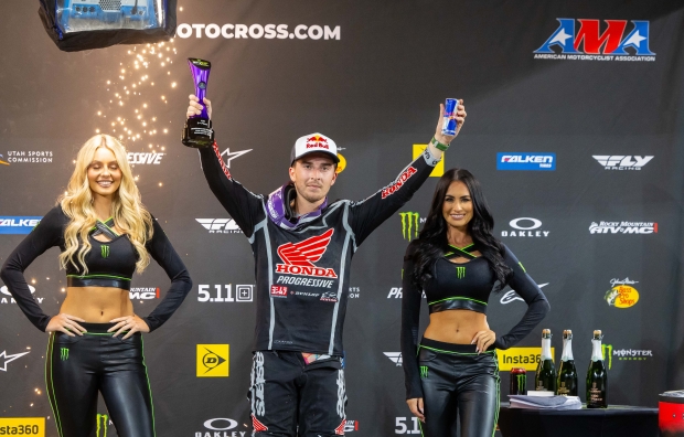 Lawrence nailed the holeshot in the 450SX main and led the first portion aboard his CRF450RWE. He fended off repeated challenges from Ken Roczen, with Eli Tomac soon joining the battle, and the racing between the top three was aggressive but clean. Roczen and Tomac both got by Lawrence on lap 8, but the Honda rider regrouped and stayed in contact. As the race entered its final quarter, Lawrence mounted one of his signature late surges, passing Roczen before the whoops with six laps remaining. He then reeled in the leading Tomac and attempted a last-lap pass before finishing just 1.6 seconds behind. Also impressive was Quad Lock Honda’s Joey Savatgy, who finished a solid fifth.