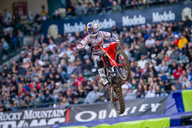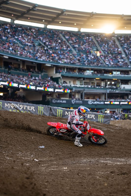 For the second week in a row, Hunter Lawrence challenged for an AMA Supercross 450 main-event win, this time at the series’ third round, back at Anaheim, California’s Angel Stadium. The Honda HRC Progressive rider ultimately finished a hard-fought second, but his late-race speed suggests that earning his first win is only a matter of time. Lawrence also narrowed the gap in the points battle, as the Australian now sits just eight points out of the lead—two fewer than last week. Meanwhile, Chance Hymas won his heat race but was taken out in the first turn of the 250SX West main, suffering a shoulder dislocation that put him out of the race.