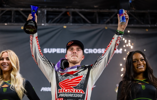 “It was a good day—the battle with Eli [Tomac] was cool! I was behind Chase [Sexton] and Jason [Anderson], and I know that the first 10 minutes of these races are always such a super-intense, high pace, so I was just trying to stay in the hunt. I know I have the legs to go the distance, so I was just trying to give myself the best shot, stay in it in the beginning and move forward. I believed that I could get there, I knew I had some good lines and was feeling good. I was trying to up the intensity towards the closing stage, and I looked up and there was like six minutes left; I was like, ‘Alright, let’s empty the tank.’ I would’ve liked to see how the last two laps unfolded had there not been traffic with the two lapped riders. It’s been my best start of the season for Supercross, which is what I wanted to do. We’ve still got so many races to go. It’s been some really good racing.”