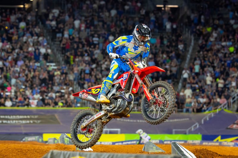 • Shimoda placed 12th in 250SX combined qualifying—including both the East and West regions. Phoenix Racing Honda riders Cullin Park and Evan Ferry qualified 10th and 22nd, respectively. Ryder Floyd (Ti Lube Honda) qualified in 25th, and Storm Lake Honda riders Luke Neese and Izaih Clark were 27th and 30th, respectively. SLR Honda’s Justin Rodbell qualified in 34th, while Next Level’s Hunter Schlosser was 41st