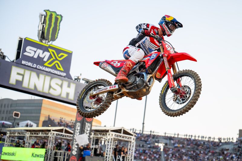 In the 450SX main event, Lawrence executed his strategy to perfection, launching inside the top three, quickly moving into the lead in the opening corners, and controlling the race from the front. Demonstrating improved early-race intensity, the CRF450RWE rider established a comfortable gap and maintained composure, eventually securing the win by 2.4 seconds over Ken Roczen. Quad Lock Honda’s Shane McElrath and Christian Craig finished in 12th and 17th, respectively.