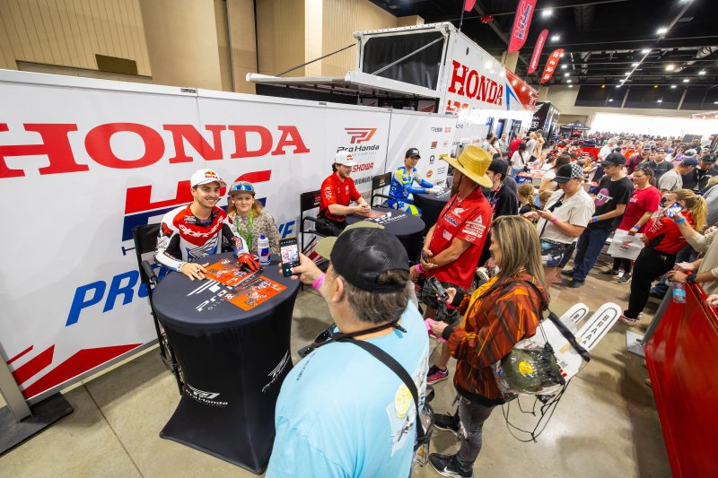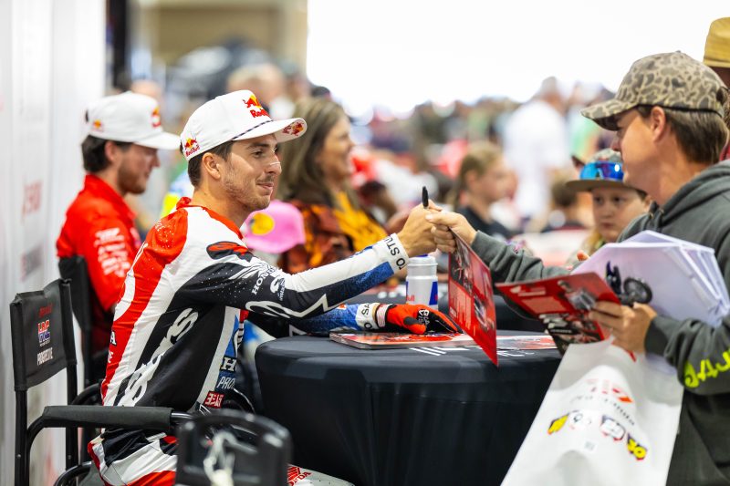 • West Region rider Chance Hymas (currently out with a shoulder injury) was in attendance in Birmingham and participated in the autograph session with teammates Lawrence and Shimoda, giving fans a chance to meet the (almost) full roster of Honda HRC Progressive riders. The Idaho native is set to start riding again this week.