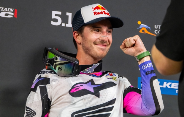 “We keep the red plate—that’s what I wanted to do this weekend! Last weekend, I was frustrated with my result and what I felt could’ve been. The team knuckled down this week and got a lot of work in, so it’s cool to see that pay off. Any win is difficult, but this was a Triple Crown—there’s three times the risk. I had my own scenario in the second race, where Cole Thompson and Vince Friese were racing each other and I was in the middle—I ended up sending Cole off the back of the berm; I don’t know how I stayed on my bike, honestly, I just got lucky because there was some carnage out there! Me and the team, we work hard! I’m blessed to have amazing people around me, and I can’t ask for much more.”