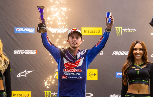 • With Hunter Lawrence finishing second and Eli Tomac finishing outside the top 10, the Honda HRC Progressive rider is the new leader of the championship, five points ahead of Ken Roczen.